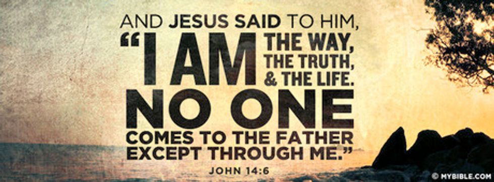 "Jesus answered, "I am the way and the truth and the life. No one comes to the father except through me.""