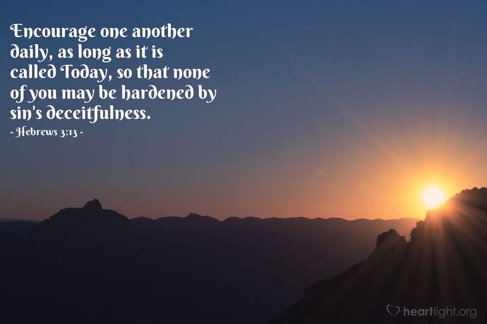 "But encourage one another daily, as long as it is called "Today," so that none of you may be hardened by sin's deceitfulness."