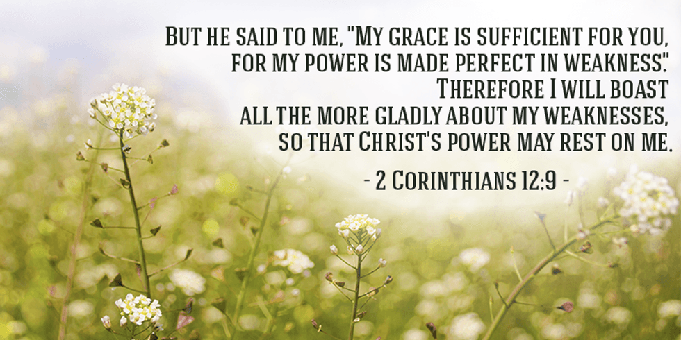 "But he said to me, "My grace is sufficient for you, for my power is made perfect in weakness." Therefore I will boast all the more gladly about my weaknesses, so that Christ's power may rest on me."