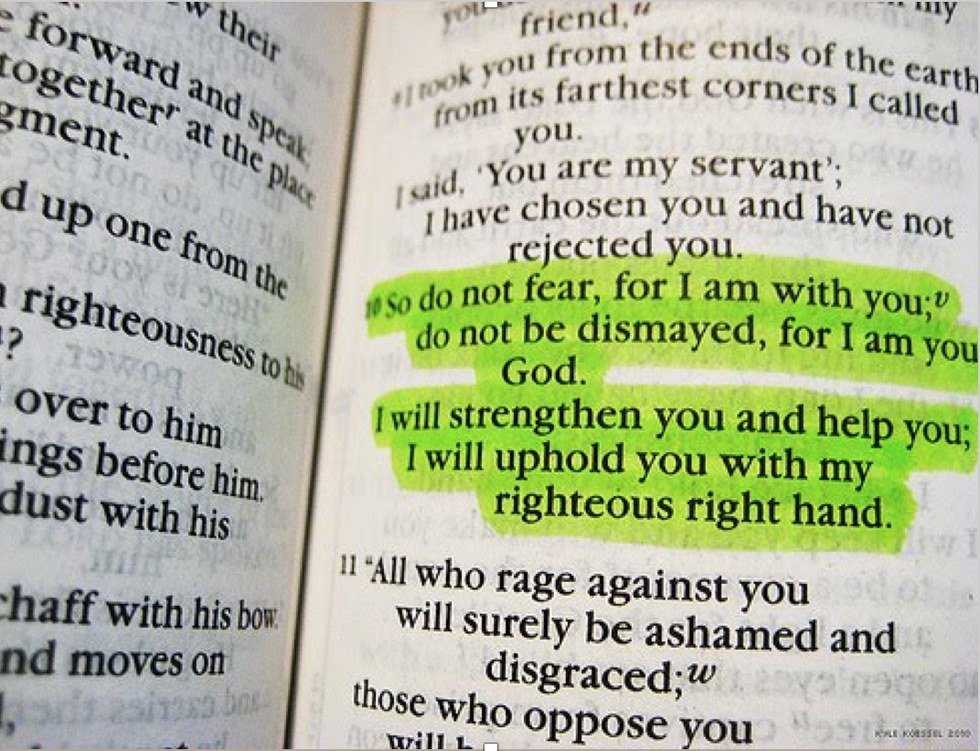 16. "So do not fear, for I am with you; do not be dismayed, for I am your God. I will strengthen you and help you; I will uphold you with my righteous right hand." - Isaiah 41:10