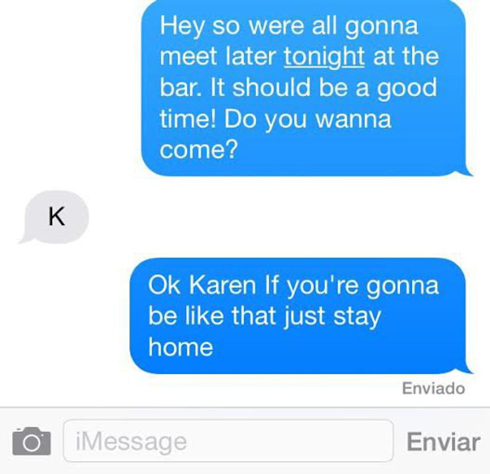 1. Texts With The Response "K" "Haha" "Lol" "Nice"