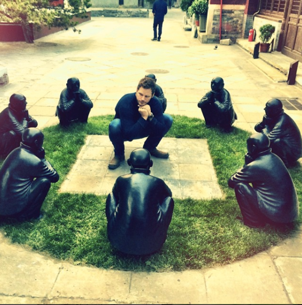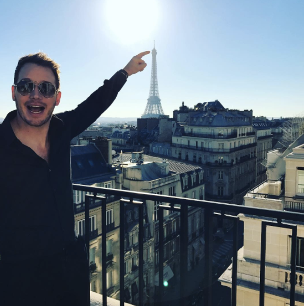 Just had a ground breaking idea to touch the tip of the Eiffel Tower in this photo. I'm pretty proud of it. It just came to me. Haha! I said, "hey I'm about to do something nobody has ever done before. Quick grab a camera" And then I just did it. And then my publicist Allison took the photo. This pose is now legally called a #chrisPratt i have patented it. If you do this pose you can be sued. #passengersmovie