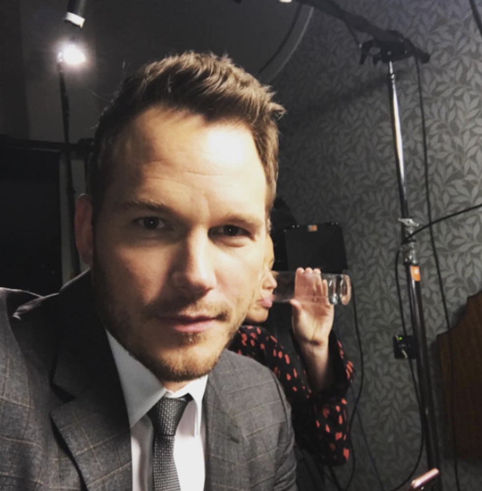 When I got delirious on these press tours I like to do my own makeup by having @bridgetbragerhair hold the makeup sponge and I dance my face pretty. Thank you to @theweeknd for writing this song which if I tweak the lyrics a little bit allows me to pretend it's about #starlord #passengersmovie