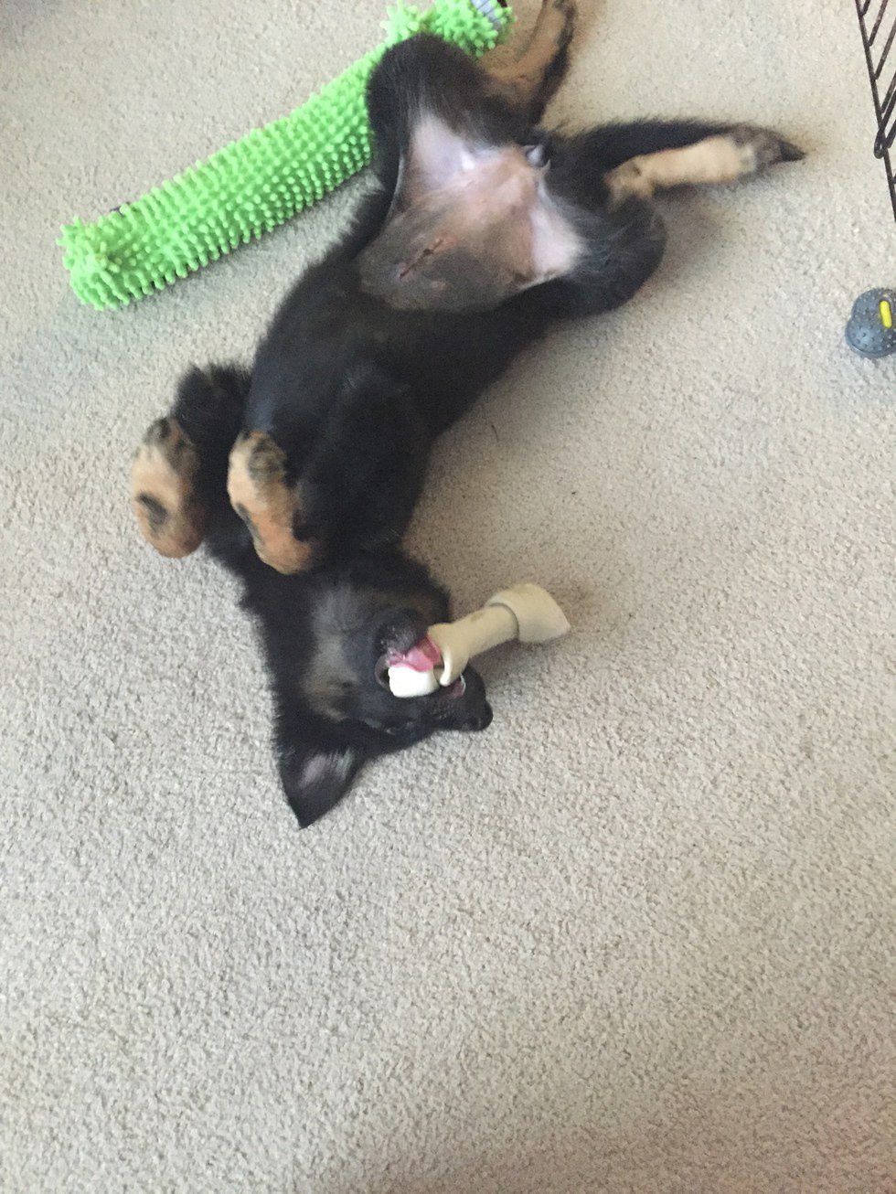 I completely forgive my mom for any time we just had pizza or frozen lasagna for dinner. It is impossible to cook when you start something, then have to go reprimand your puppy. Then wash your hands. And repeat.