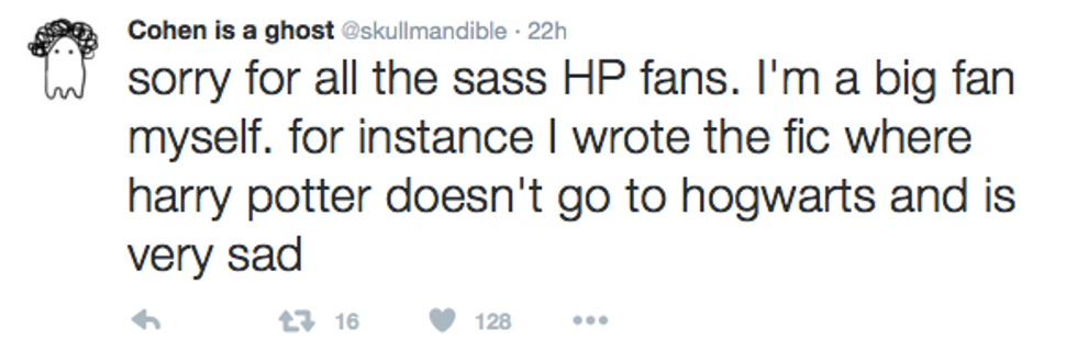 Cohen has recently taken to searching for plot holes in the "Harry Potter" series.