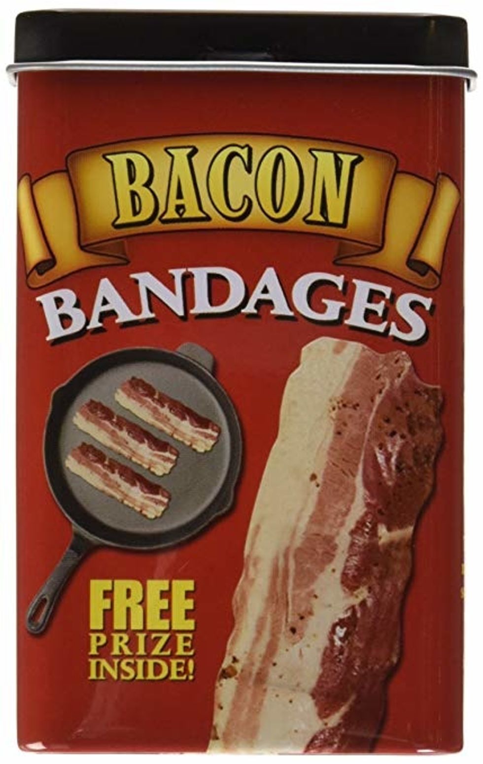Bacon bandages -- to bind up those broken hearts. Over missed bacon opportunities. $8 on Amazon.