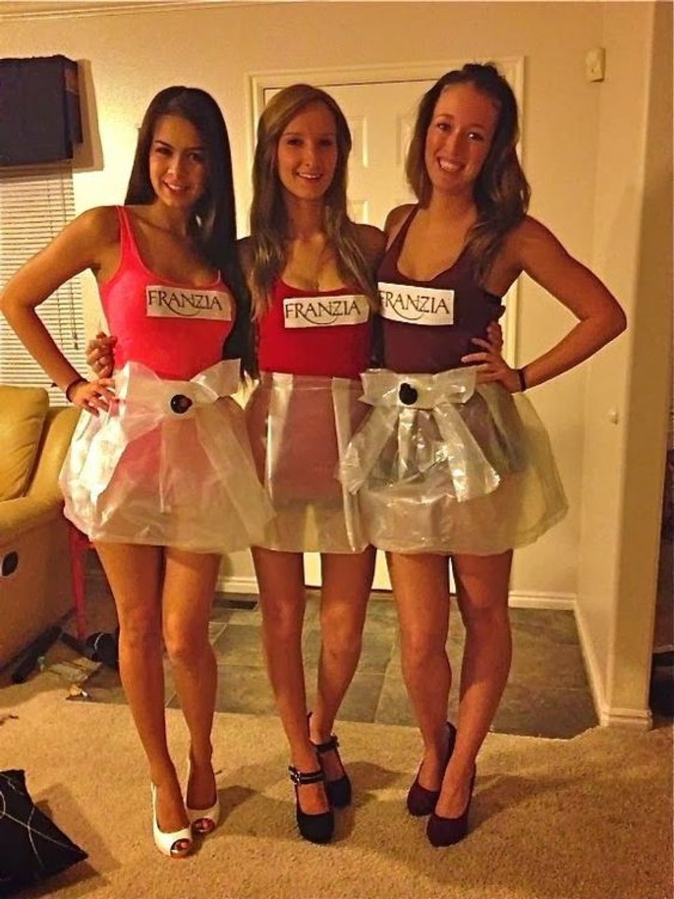 All you'll need are colored dresses, skirts, the label, and the bags from boxes of Franzia. Now you and your friends can wine all night!