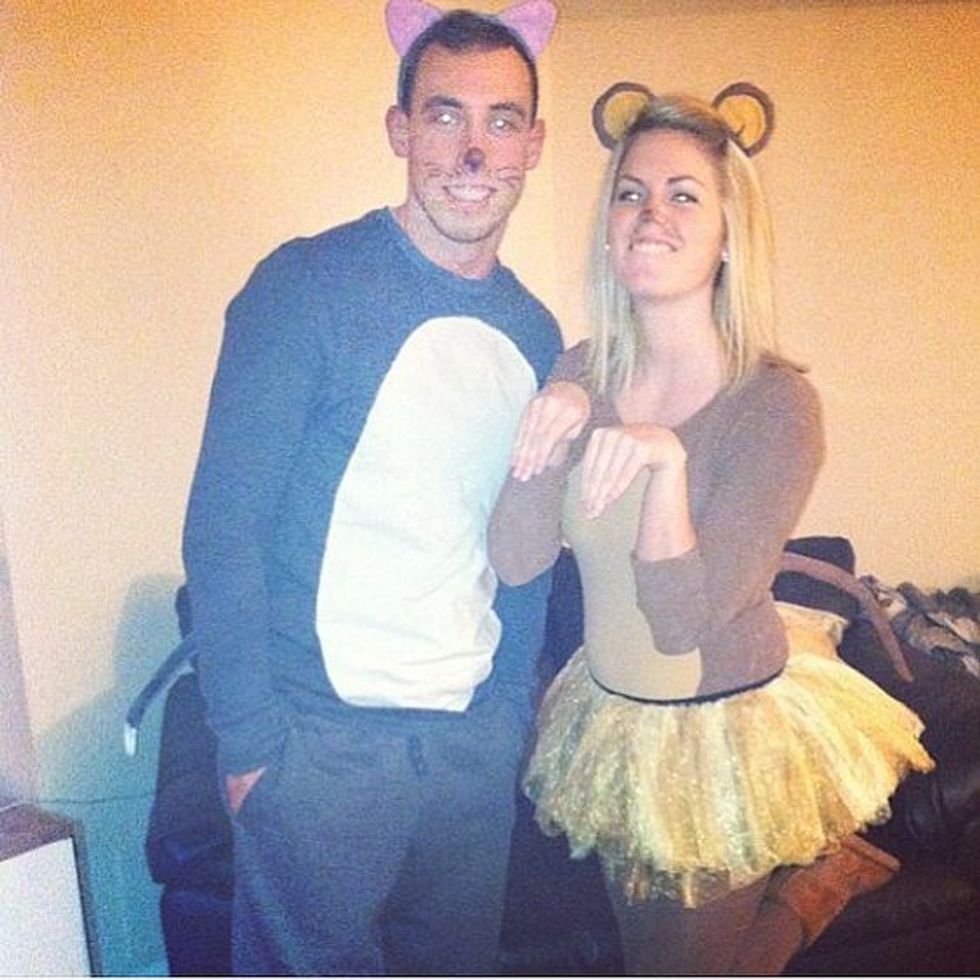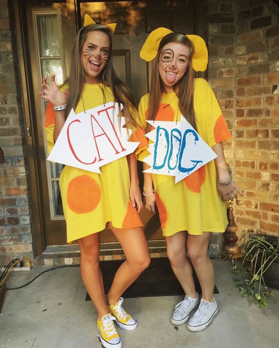 Here's a costume for best friends that are pretty much joined at the hip. Get two big yellow shirts, and glue brown spots onto them! Then, paint ears and your faces as your respective character. Bonus points for attaching yourselves together.