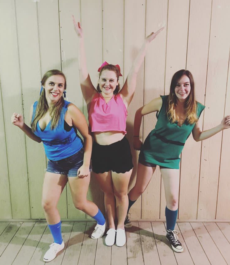 The OG girl-squad. And another costume for the three best friends anyone could ever have. The three color schemes are blue, pink, and green. Big shirts in those colors, and you can even make eyes out of felt if you really want to (sort of like a mask). A big black piece of fabric can serve as a belt for your costume! Enjoy being sugar, spice, and everything nice!