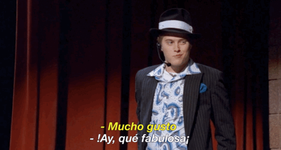 Translation: Nice to meet you. Oh, how fabulous (Everything sounds better in Spanish).