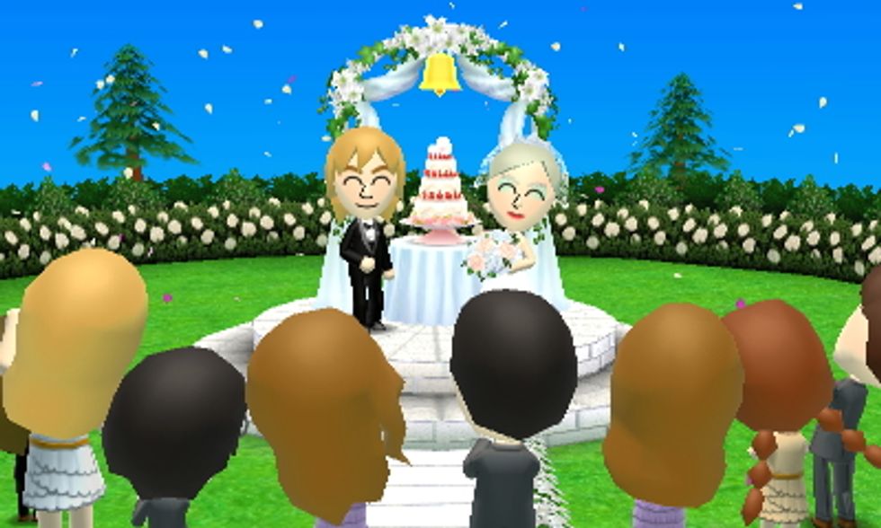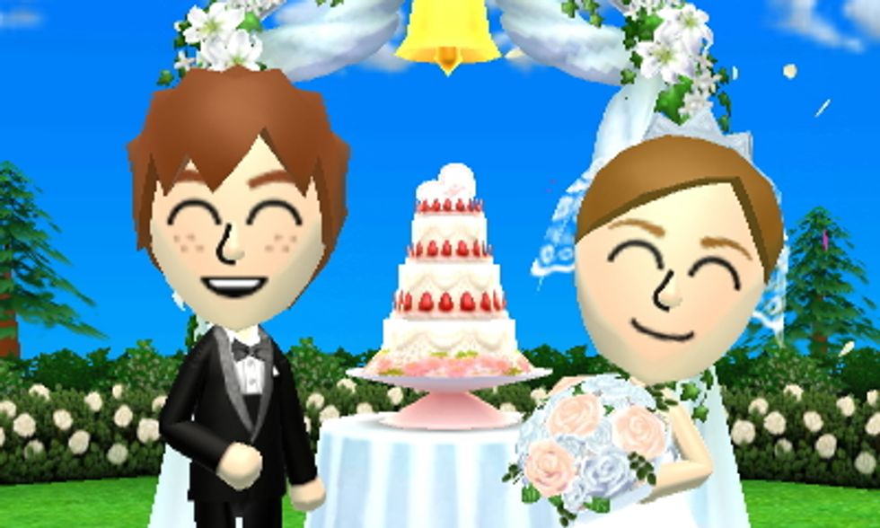 On an island populated by characters from pop culture, entertaining situations ensue. The Miis can get married, but the couples are often surprising. Sometimes it works the way you want it to, like in the first picture—Ron and Hermione got married. Other times, the couples are rather unexpected, as in the second picture, which is Elsa and Kristoff's wedding.
