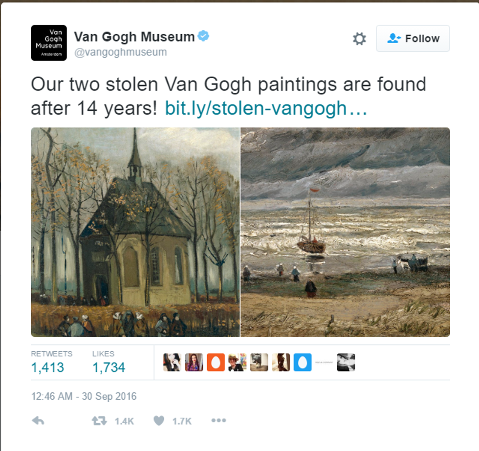 1. After 14 years, Stolen Van Gogh art pieces were recovered.