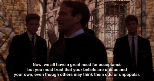 Few movies inspire me quite like "Dead Poets Society" does. While the movie may not seem to be perfect to many critics, to me, "Dead Poets Society" is perfect because it addresses the imperfections of adolescent life with a beauty rarely found in any films. I was lucky enough to have watched "Dead Poets Society" when I was a teenager and could immediately relate to the main characters. Even as I am older, I still look to the film for encouragement and am thankful for all of the life lessons it has taught me. Here are the 15 best lessons I learned from Mr. Keating and the characters in "Dead Poets Society:"