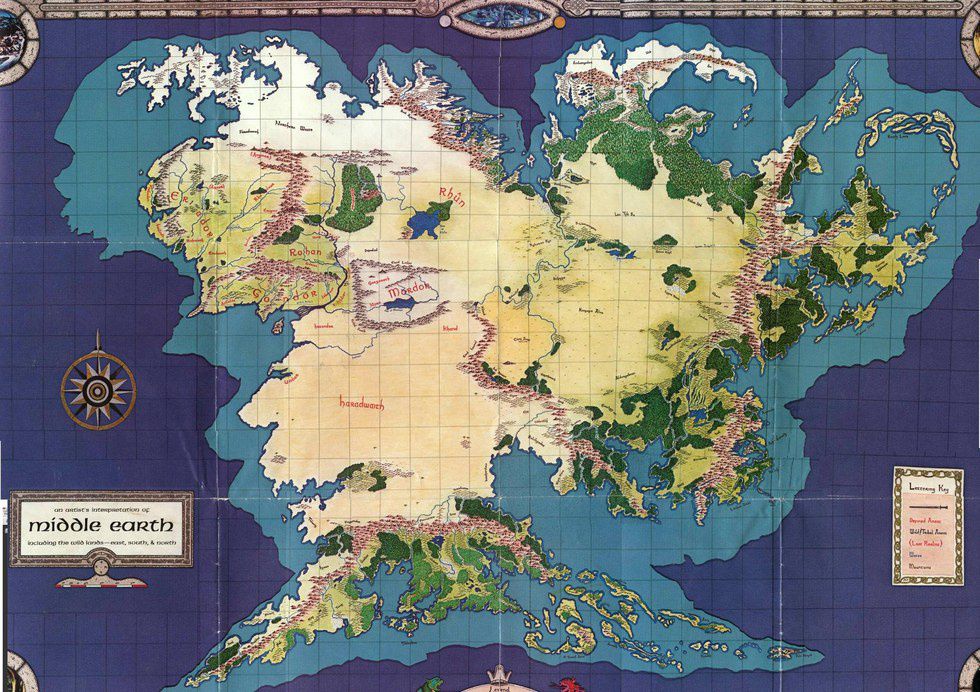 Continuing with the literary theme, I have always wondered what Middle Earth would look like had Tolkien illustrated a complete map of the continent. This map I found comes from the 1984 board game Middle Earth Role Playing. Although not officially created by J.R.R. himself, it was approved by Tolkien Enterprises, the company that manages all his copyright materials.