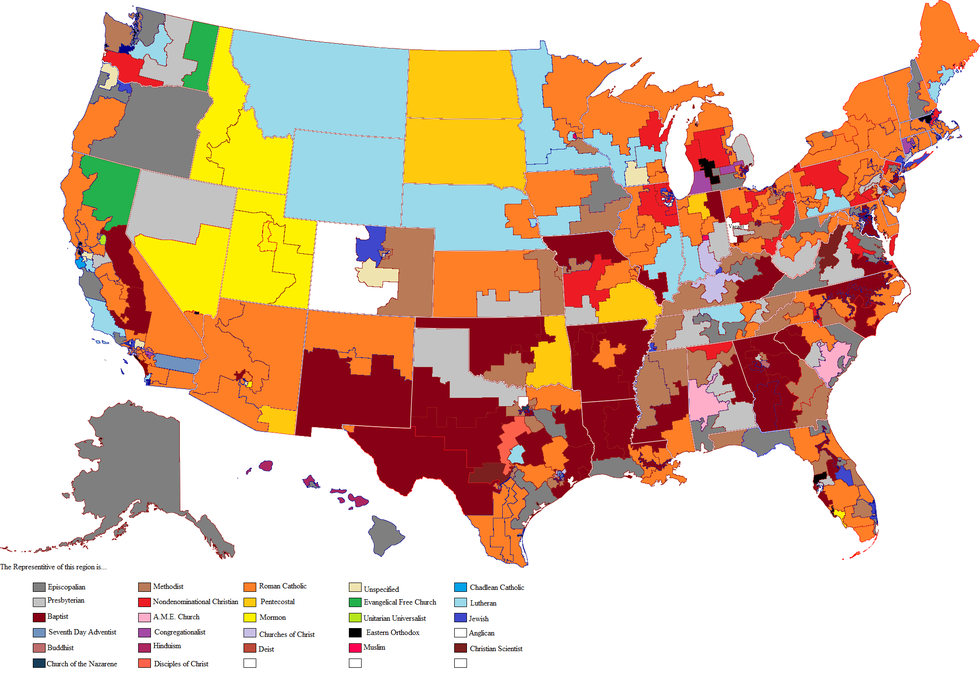 This one is fairly self-explanatory by the title of the map itself. It's a map of the most common surname in each European country. It is interesting to see the trends, most prominently the variants of "Johnson", as seen in the Faroe Islands (Joenson), Sweden (Johansson), Belarus (Ivanov), Denmark (Jensen), and The Netherlands (De Jong); as well as the variants of Novak seen in the Slavic countries in central Europe, including Poland (Nowak), The Czech Republic (Novák), and Slovenia (Novak)