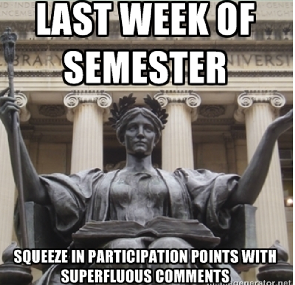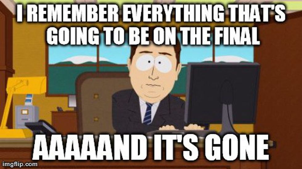 It's that time of year again... the time of year that we all dread. That time where all that students have on their mind is summer fever, yet tons and tons of work due at the last minute for several classes. It's the week before finals. And if you're just like the rest of us, here's what you'll probably be thinking during the next few weeks until it's over.