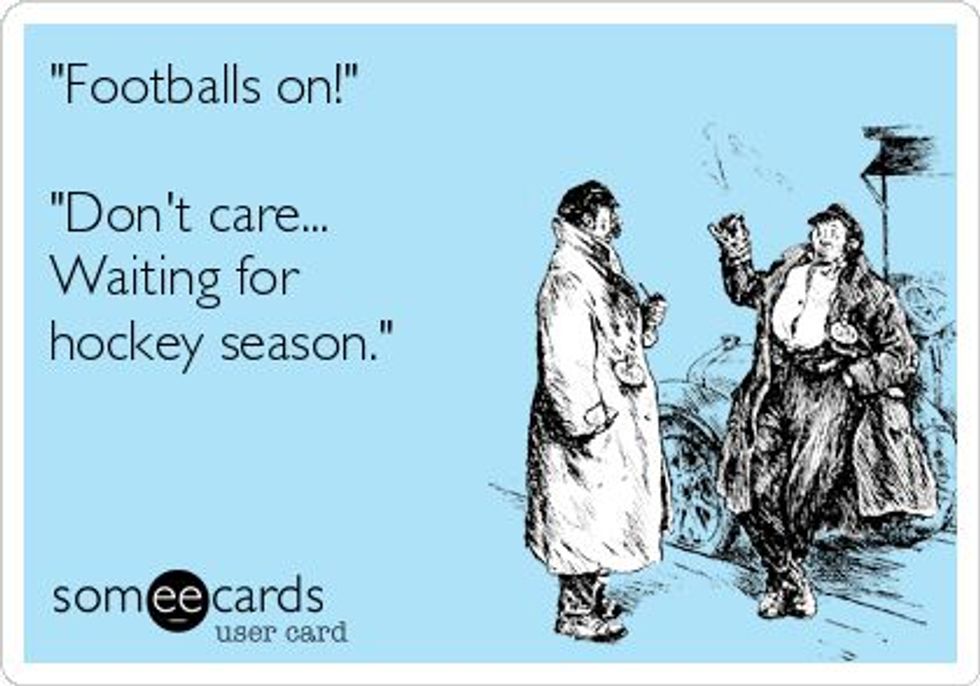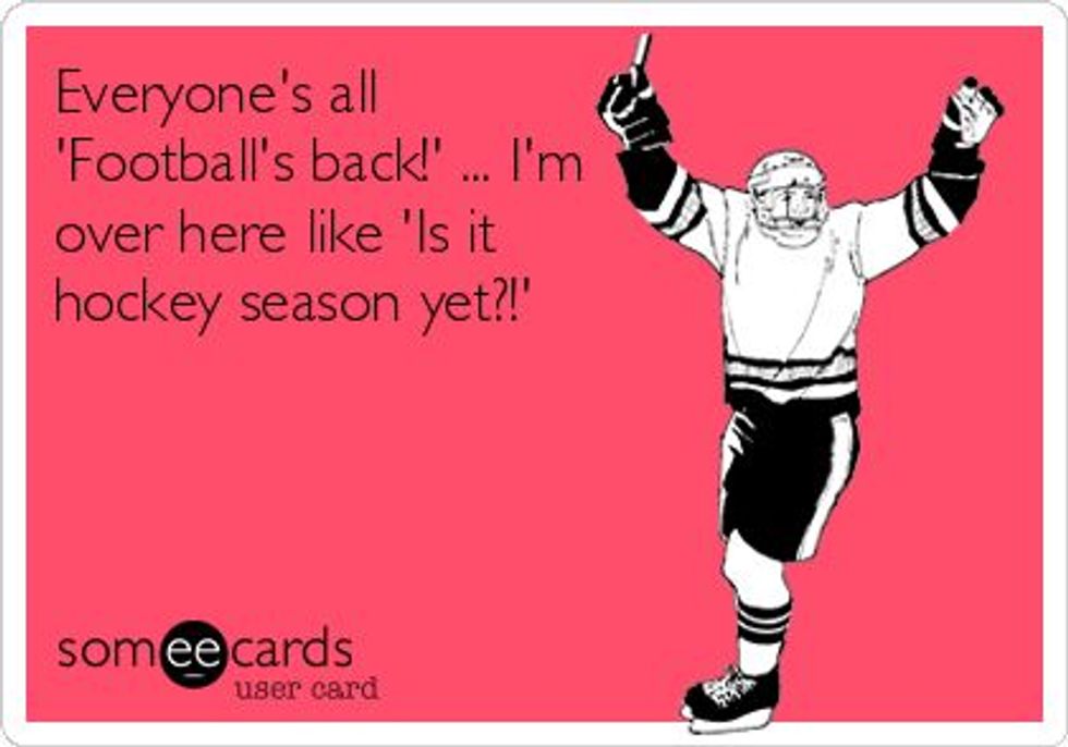 So right now, if you're a hockey fan, particularly, all you're thinking about is how many days there are until October, you might be watching the preseason games starting in September, and you're trying really hard not to bum football fans out with your "don't care" attitude about their sport.