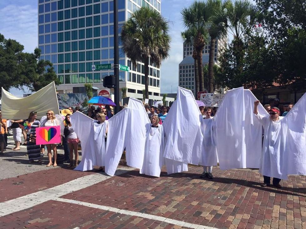 14. Following the tragic Pulse Nightclub shooting that claimed the lives of 49 people, people of Orlando, The Orlando Shakespeare Festival, dressed as angels to protect Westboro Baptist church protesters from interrupting a funeral for one of the victims of the shooting. This proves that faith in humanity can be restored in a horrible time.