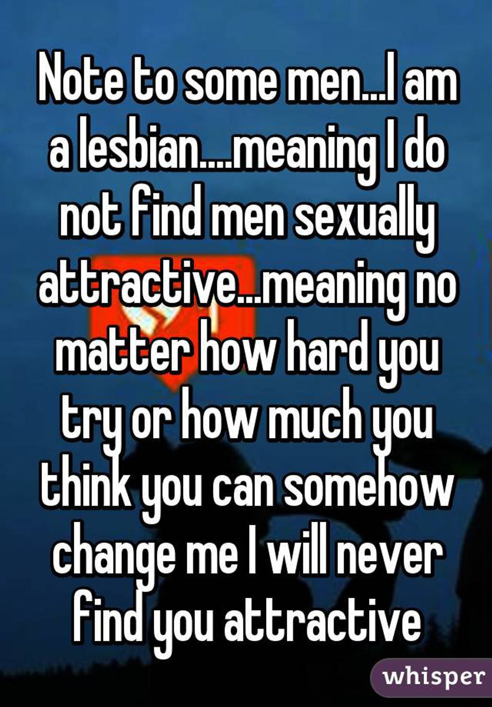 No, I do not. I only find women attractive. I can carry a conversation with them. I can be their friend, and they can be my friend. They can try has hard as they want to "try to change me" and make me no longer straight. Guess what, fellas? I am a lesbian, and I will forever remain that way. Your downstairs will not change me. Don't get any ideas!