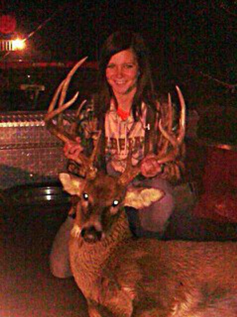 The sun is rising, leaves are rustling in the wind, the smell of fall is in the air. Her comfort zone is fifteen foot above the ground in a deer stand.