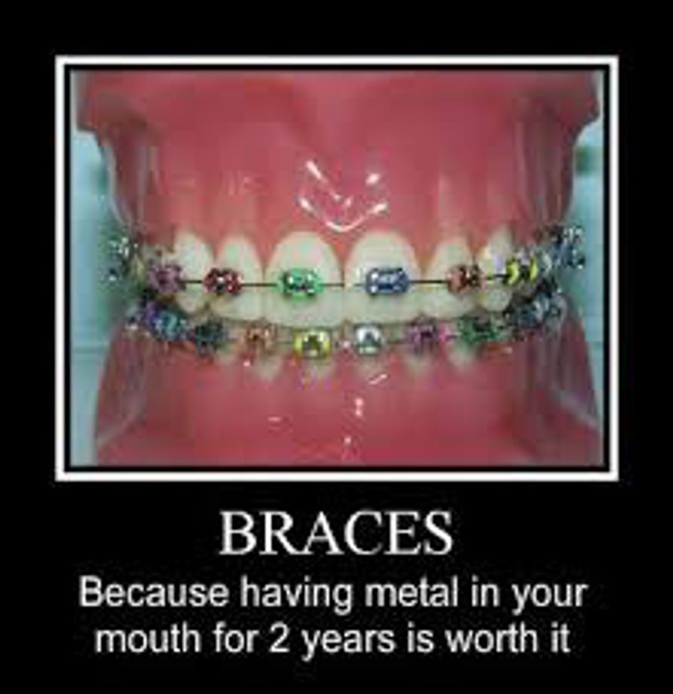 I always hear people say things along the line of "braces are so cool! I wish that I could have them!", but little do they know, braces are a nightmare! Once you get braces, your entire life revolves around the death traps! Braces suck, and before you know it, you're life becomes a living hell. Forget straight teeth, who needs them anyways?