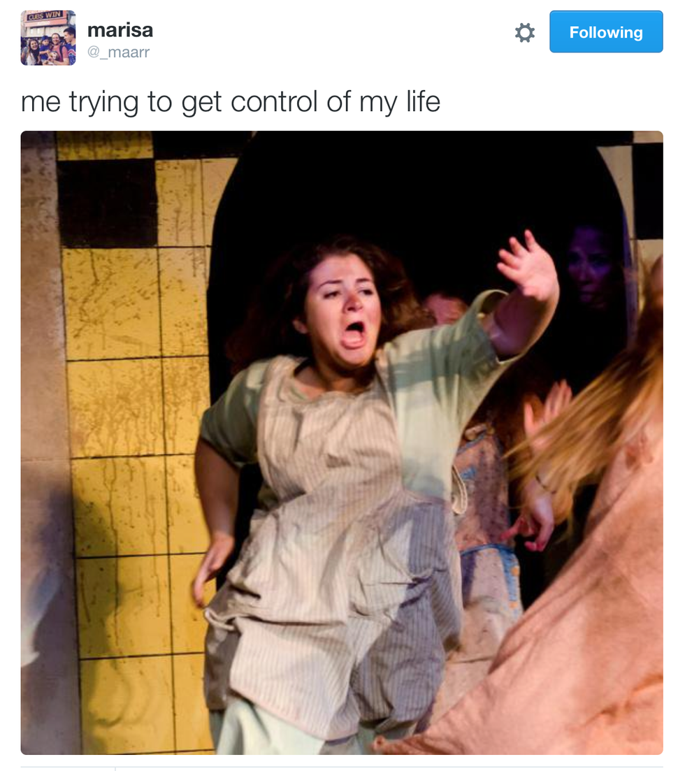 For all four years of high school, I was a theater kid. I spent a majority of my time in the theater, in the basement of the theater, getting food with theater kids, seeing shows at other theaters, memorizing lines for theater or attending/running theater sponsored events. However, after much debate and consideration, I decided not to pursue my love for theater after high school. It is now my second semester of college, I haven't been on stage in 10 months, and I am having large and dramatic withdrawals. It was very difficult for me to leave the theater, but what I have come to understand is that the theater will never leave me. No matter how far I go or how many months I spend without performing, so much of me is based on the things I learned by being a part of theater, and that will never change. Here are some of my daily reminders that prove that once you're a theater kid, you're always a theater kid.