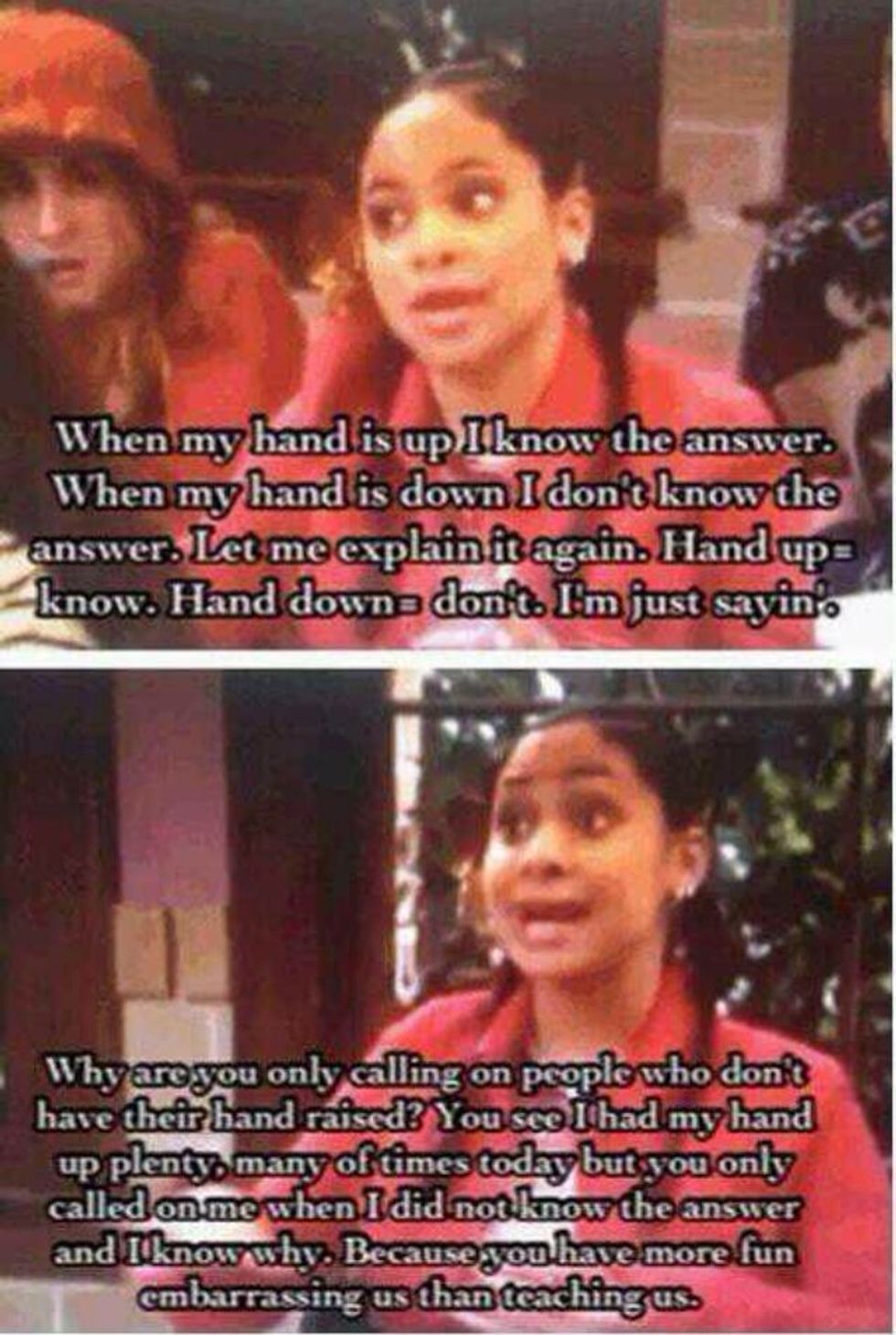 To most 20 year old, That's so Raven was the bridge between pleasure and the hardships of life. During a time where Disney Channel was bearable and enjoyable, there would be marathons where the main source of entertainment was entertainment. Now, the only thing we can do is sip in our coffee and reminisce on those days where the inner child was happy. It is a fact that every single person who watched the show, can recognize these scenes. Whether they can relate to them or not. And chances are they do relate. This is how.