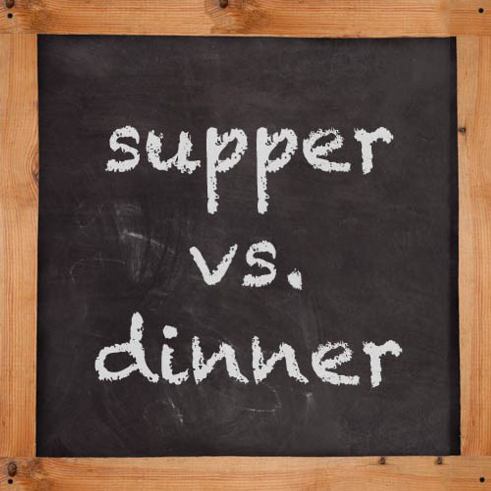 This is always a constant argument that makes scheduling meal plans difficult. It is a culture difference, but also a personal definition. Typically, dinner is eaten between 2-5 pm and supper is a meal that is eaten after 7 pm.