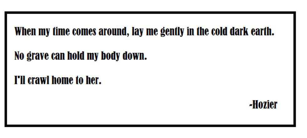 In a world filled with so many beautiful songs, how is it possible to pick a few to highlight? As someone who listens to music while they perform all of their daily tasks, I've taken the time to really soak in a lot lyrics. Some are poetic and classic, some are modern and mainstream. In the haze of media attention most musicians get these days, it's hard to remember that some of them actually produce quality and meaningful lyrics. However, there are many musicians that never get any attention and create some of the most beautiful lyrics I believe have ever graced my ears. These are a few of the countless songs I consider to be timeless and the phrases in them I believe are the best. Whether it be a simple folk-style song with a message or a dramatic ballad, the words in these songs are laced together to create masterpieces. Not by coincidence, many are written by the same person.