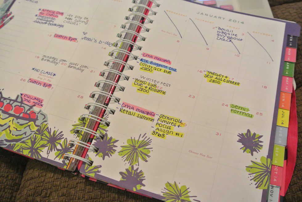 Get a planner, set alerts in your phone, and have separate binders for separate days or classes. Make sure you have a decent laptop with a lot of battery power just in case you forget your charger.