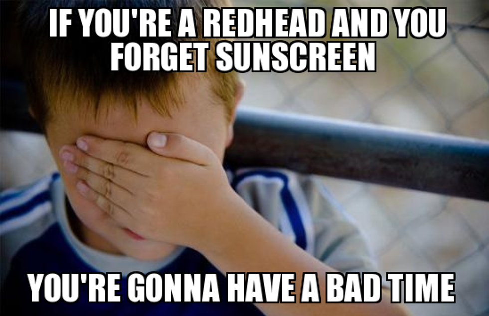 Unlike a lot of redheads, I’m in the sun almost every day during the summer. Believe it or not, I do get some color (yay for tan lines!) but it takes me the majority of the summer to notice a difference. I do burn but I rarely get a bad one.