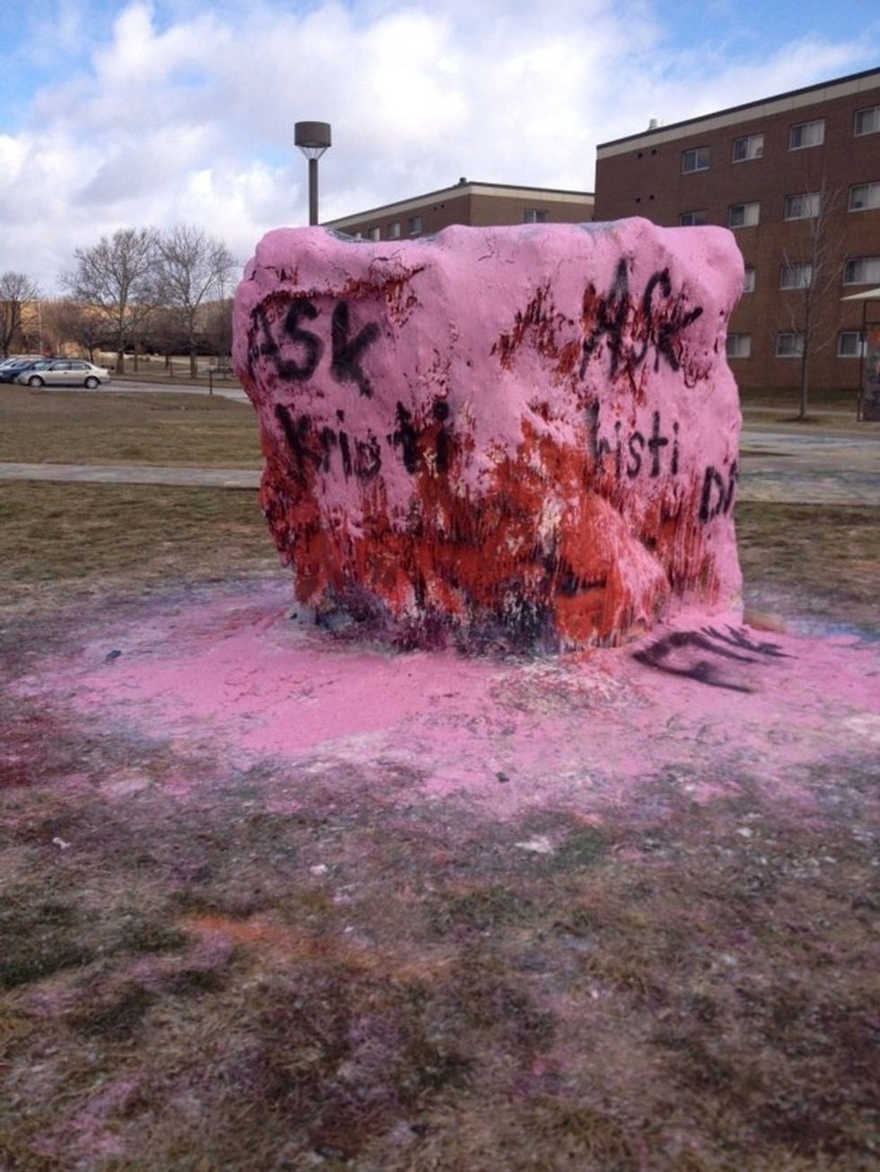 Nope, it's not Dwayne Johnson. The Rock on campus has been painted for years to represent various organizations/events on campus. The week that we play TSUN, The Rock is fiercely guarded to make sure that it isn’t tainted with that atrocious yellow and blue. Also, I’m pretty sure that The Rock started out as a pebble and has grown with layers of paint, but who knows for certain?
