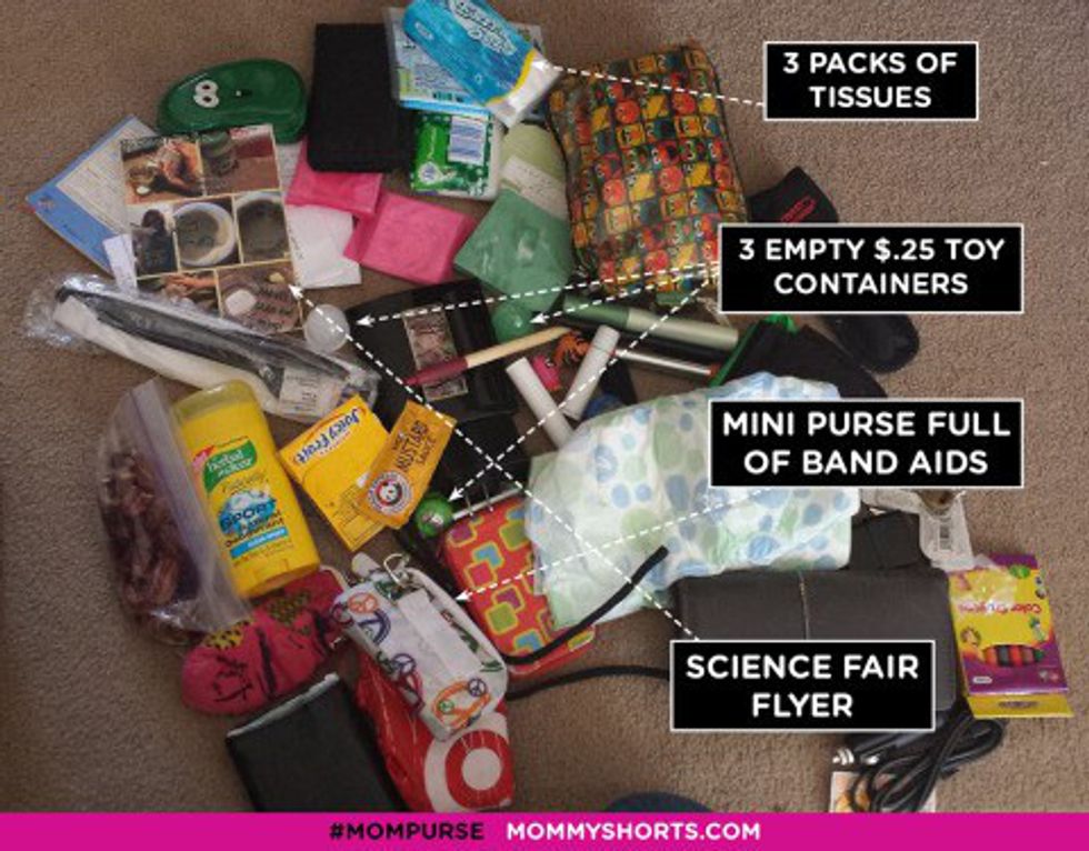 16. A purse filled to the brim with old receipts, lipstick, tissues, pens etc.