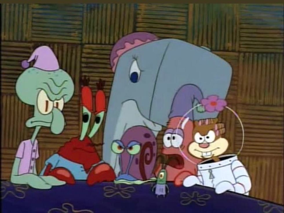 When you're trying to eat at the dining hall but the table next to you won't stop smacking on their food