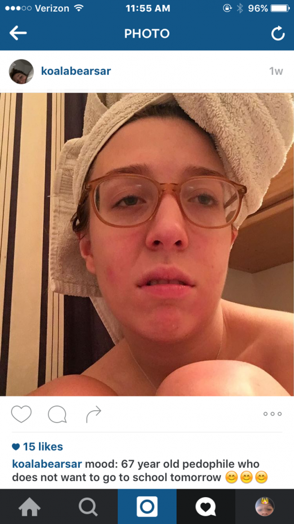 This person only posts photos of them-self. Always alone and typically a selfie. Their entire feed features them-only, and sometimes you wonder if they even have any friends, or if they're just that much in love with themselves. We get it, you're pretty, stop rubbing it in every five seconds.