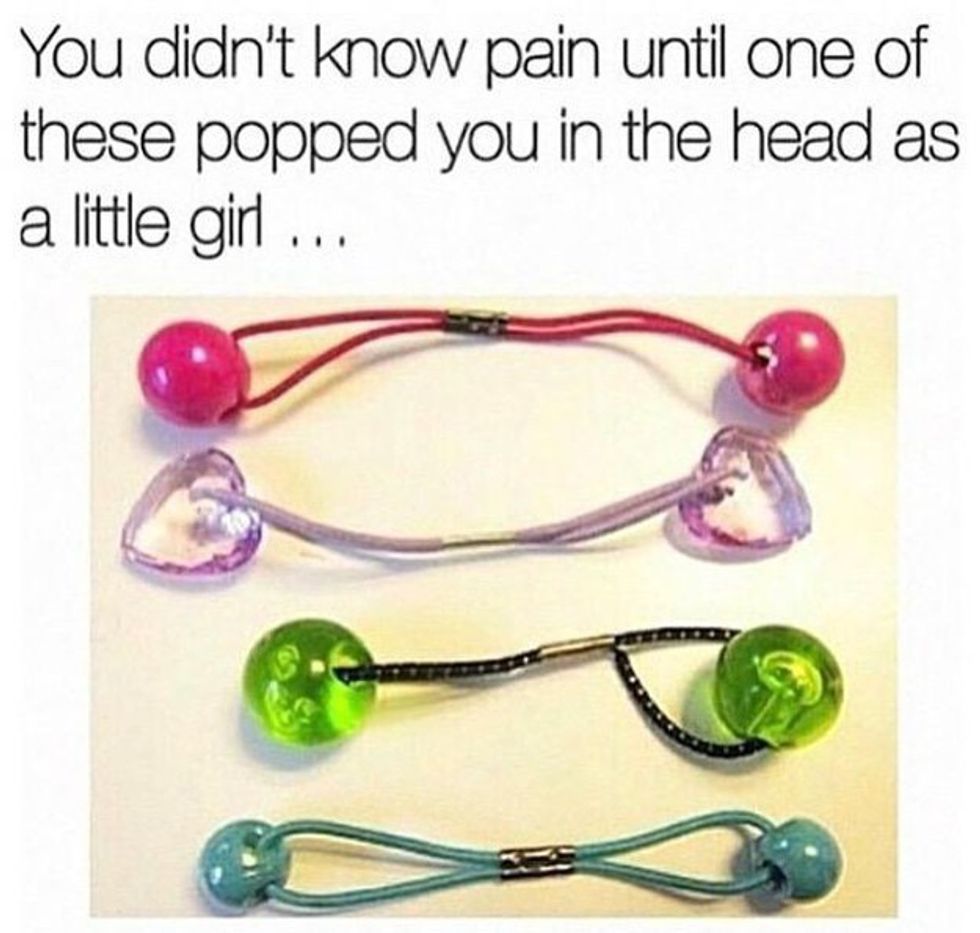 Ladies clearly need more struggles than just birthing. There is also the pain of pulling out knotted hair ties, makeup tutorials gone wrong, and feeling as though you have a hair down your shirt and you can't check to see in public.