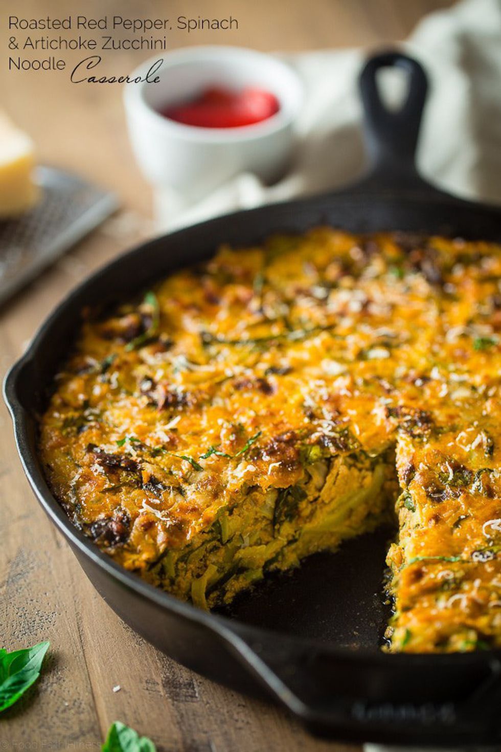 (Recipe: http://www.foodfaithfitness.com/zucchini-casserole-with-red-peppers-spinach/)