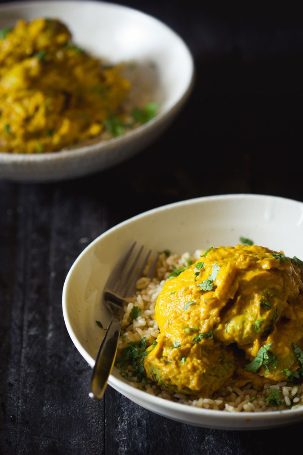 (Recipe: http://www.nudefoodhero.com/chickpea-zucchini-falafel-pumpkin-coconut-curry-sauce/)