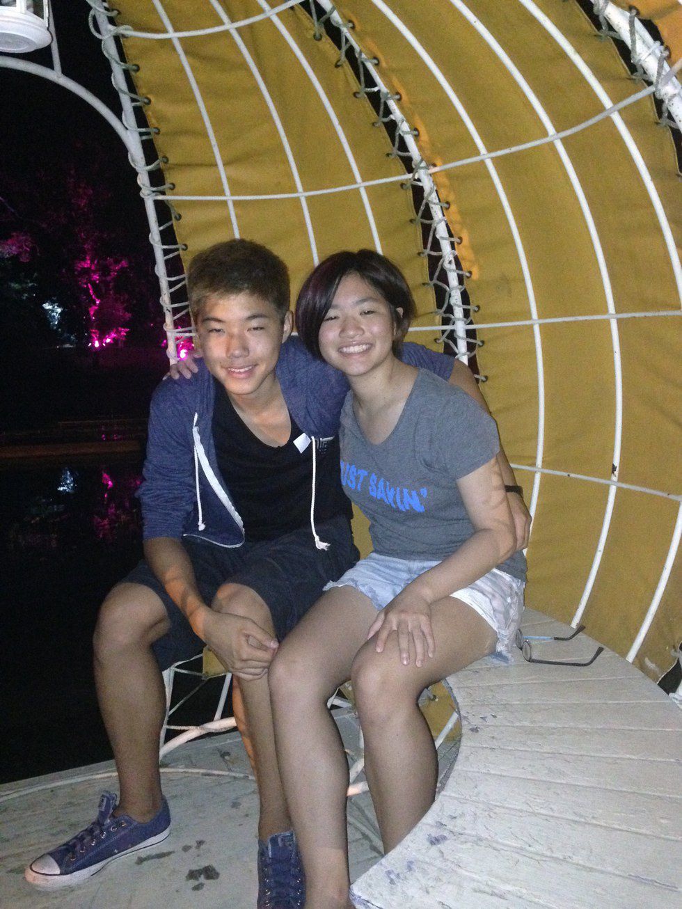 On the first day of my world history class, my teacher was calling roll call when she realized we had the same unique last name, gazed across the room and saw that we're Asian and asked "any relation?" without having planned anything, my brother and I spoke at the same time, saying "twins," both shocking and awing the teacher and the class.