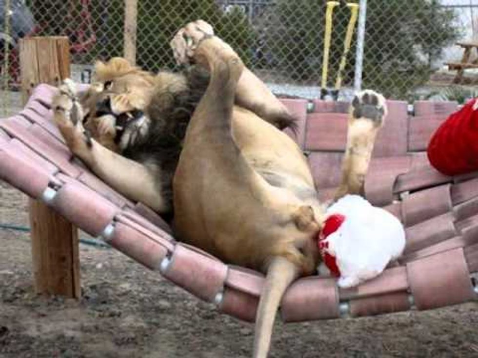 Look at this lion just entertaining itself, completely un-amused by the Valentine's Day plush toys. Very similar to when I pass by the Valentine's aisle in Walmart.