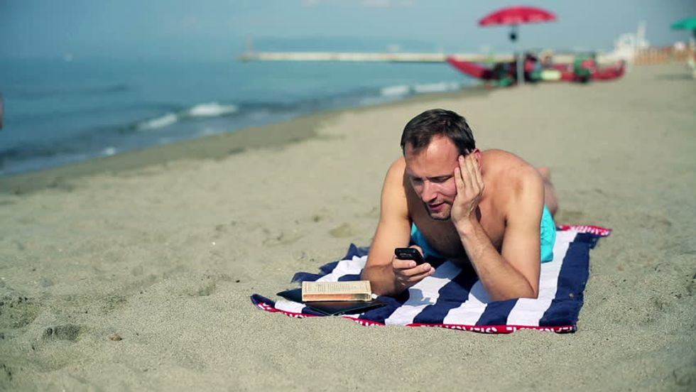 If you are going to be on your phone the whole time why did you come to the beach you can do exactly what you are doing in the comfort of your own home.