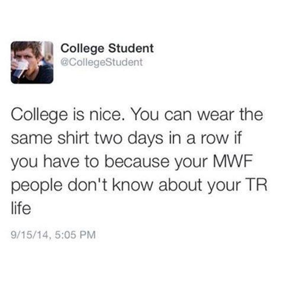Midterms are approaching, you're drowning in stress, broke, most likely hungover, starving, sleep deprived, and homesick. Just the daily life of a college student, and we're all struggling together. Oftentimes we struggle just to get through one week, but before we know it, the semester has flown by. Either way, we suck at "adulting" and wonder why we're even here. So here's 17 thoughts that go through our heads on a daily basis.