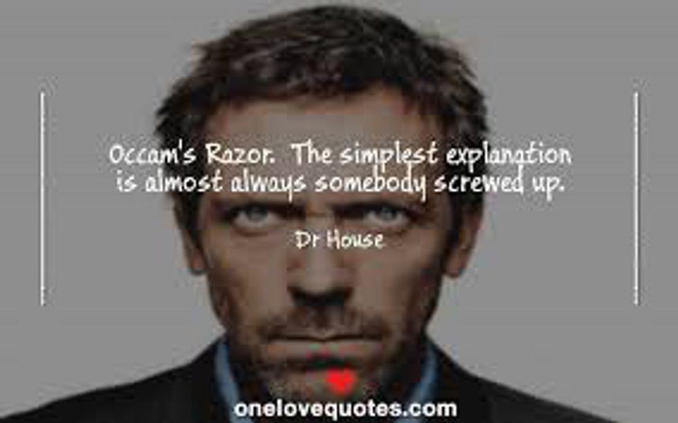12. "Occam's Razor. The simplest explanation is almost always somebody screwed up."