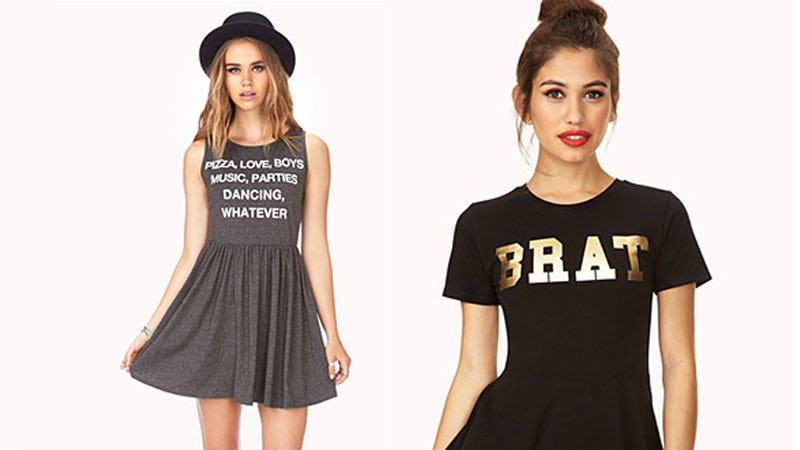 What a waste of a cute outfit. It had so much potential and then they just had to slap words on it.