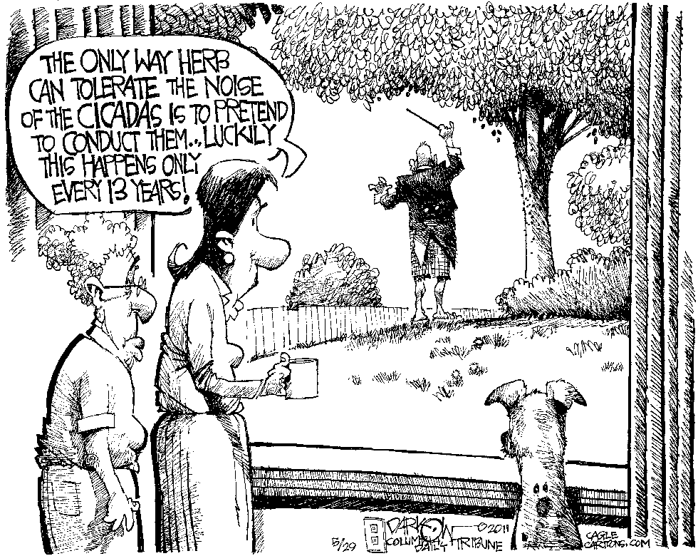 14. You will plan your Next Vacation around where the Cicadas are, or Rather where they are NOT; there will be no Cicada Cookies or the Song of the Critter in the Vacation agenda.