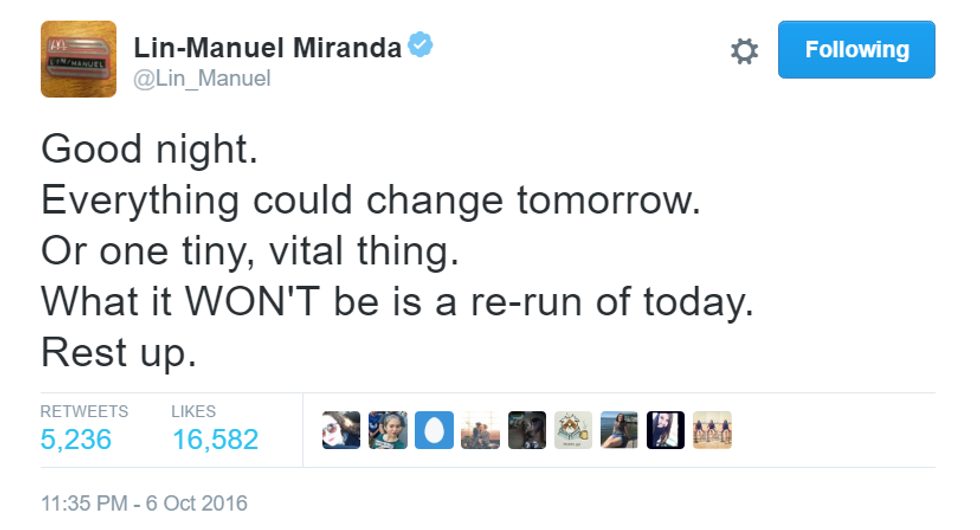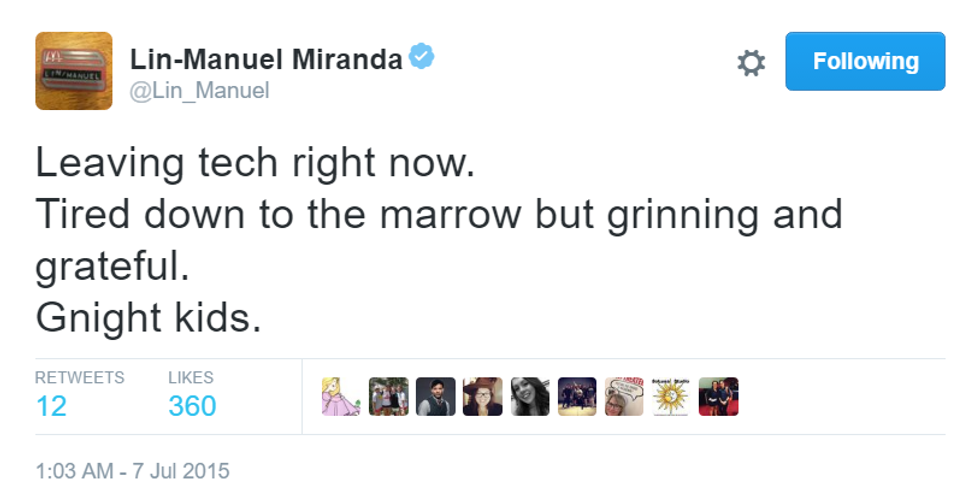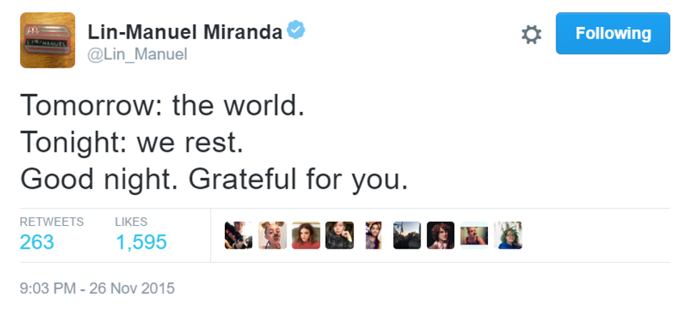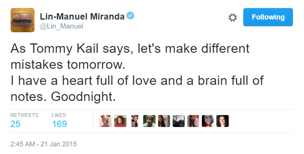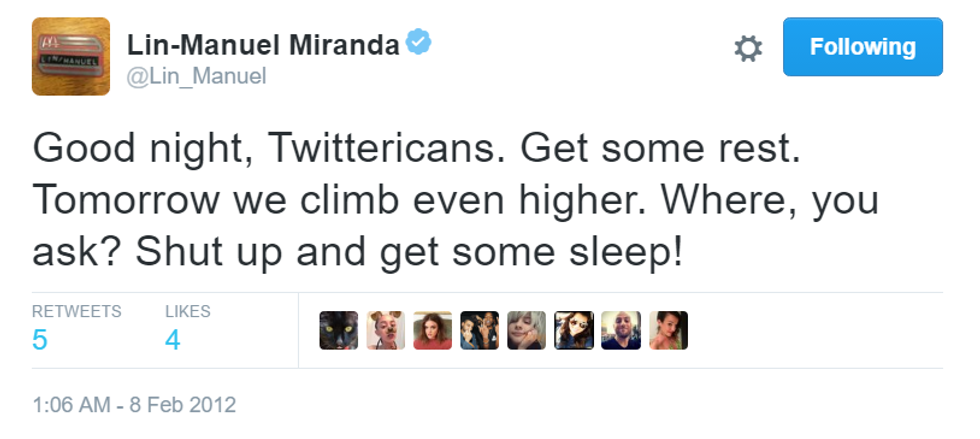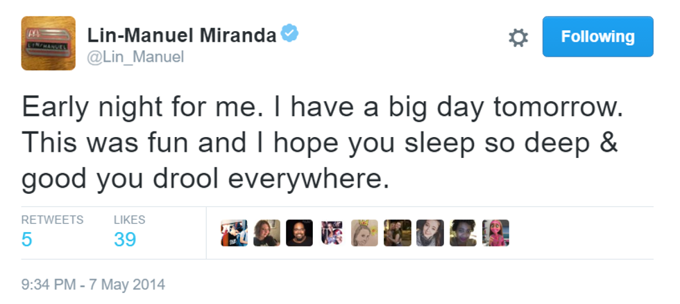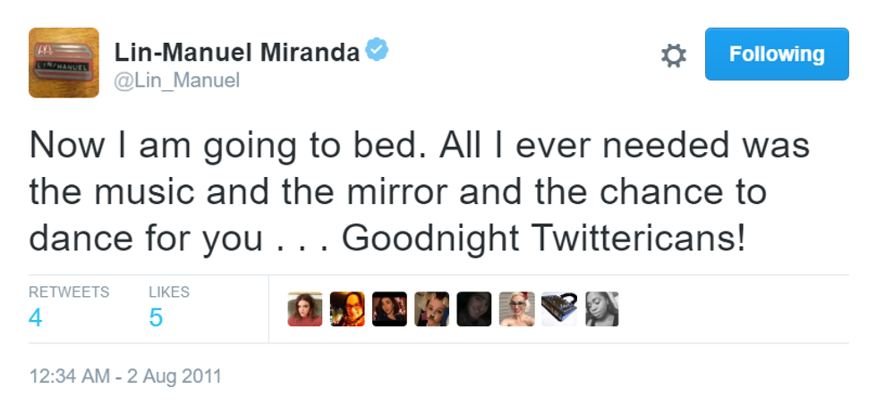 How can a man be so inspiring in only 140 characters? Here are the best of Lin-Manuel Miranda's goodnight tweets.