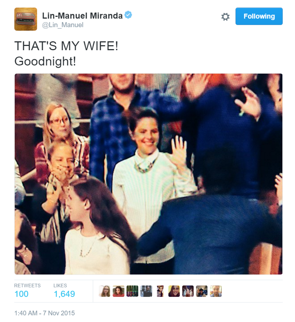 Coming off of his childhood dream of hosting Saturday Night Live and he doesn't even brag in his final goodnight tweet. Also, look at how he shows off his wife.