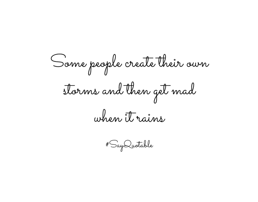 Not everyone is going to understand you and your plan and that’s ok. Just keep doing you and the rest is history.17. "Some people create their own storms and then get mad when it rains."