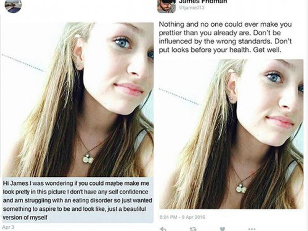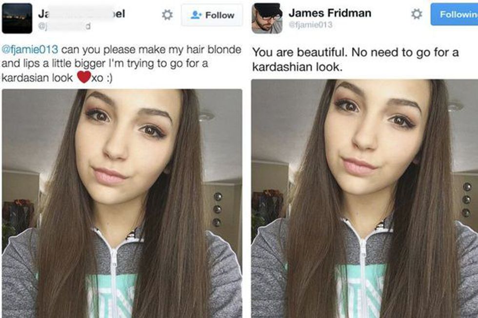 Most importantly, what James' projects teach the world is that photoshop and editing will not make us feel any better about ourselves. He shows this by refusing to alter photos of people with requests to change themselves in order to fit in with society's version of "beautiful." His lessons and morals are just what this messed up society, who feels the need to ask for obscure photoshop requests, needs.