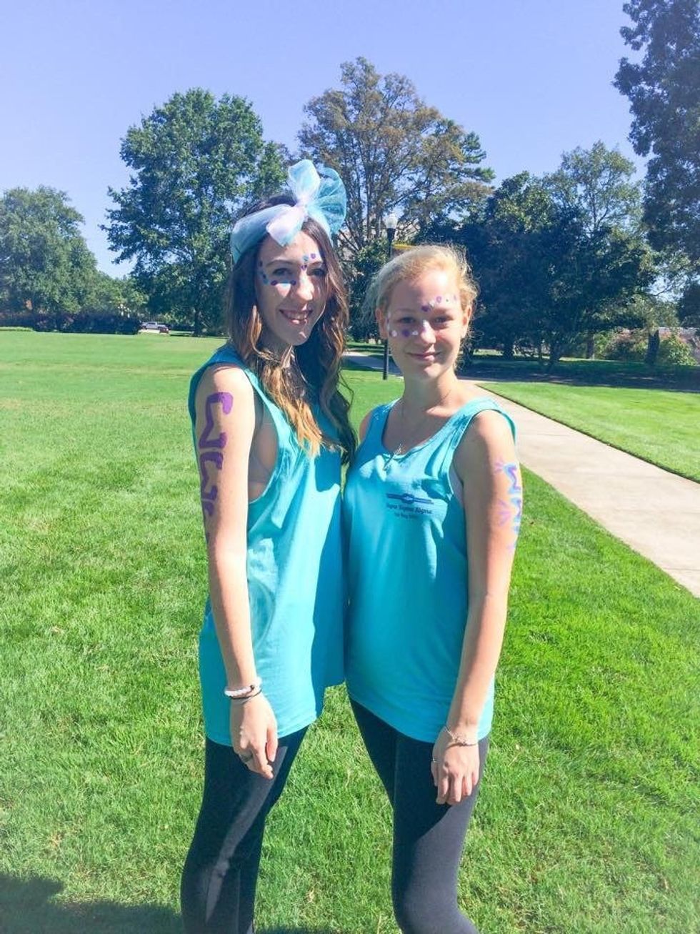 Cameron and I went through formal recruitment together and both accepted bids from Sigma Sigma Sigma. We now reside in the Sigma house, and the walls are covered in evidence of our love for our sorority, our letters, and each other.